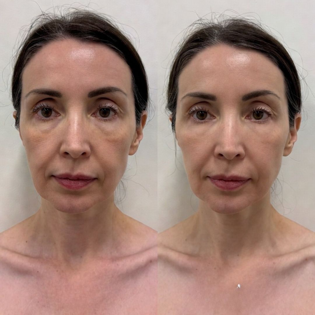 Наплыв бровей уменьшился, то есть брови и веки поднялись. Процедура омоложения лица дала мне новый уровень уверенности и самооценки. Теперь я смотрю в зеркало с улыбкой и радуюсь тому, как прекрасно выгляжу.